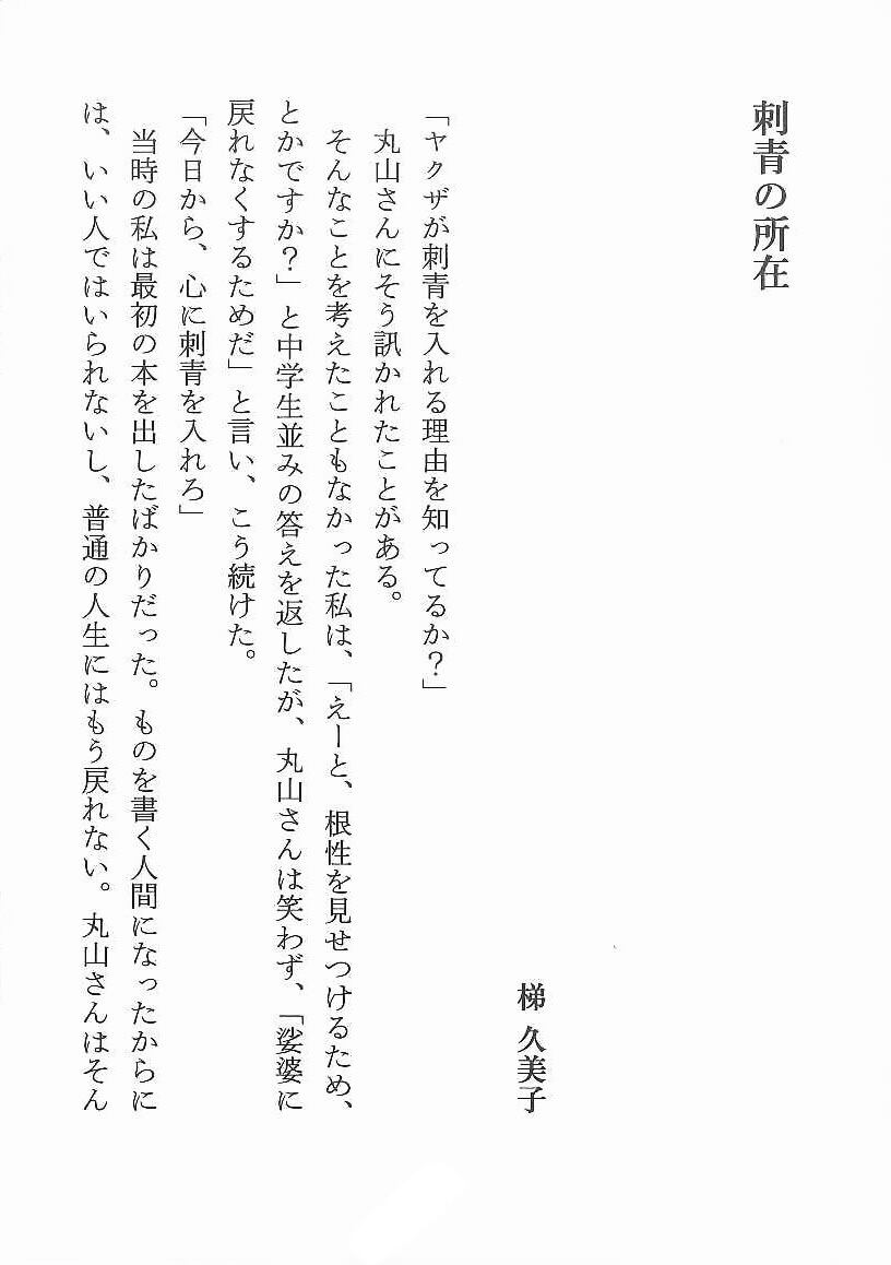 「新編 夏の流れ/河」の特製副読本。収録作と人間丸山健二について、書下ろしエッセイ2編、和合亮一「いざ硫黄の山へ」と梯久美子「刺青の所在」を収録。